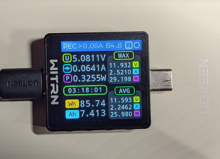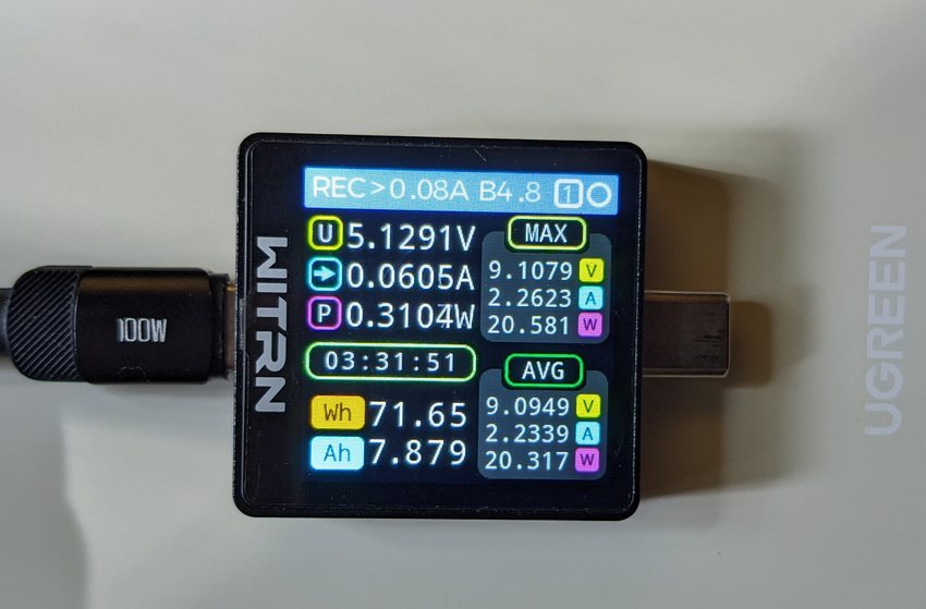市面上 20000 毫安时 30W 功率的移动电源选择并不算太多,比较了许久 reizhi 最终还是下单了绿联的 PB521 自带线款,价格和重量都比较令人满意。尽管我还有一个酷态科15号,但 450 克的重量让我平时很少带它出去使用。
