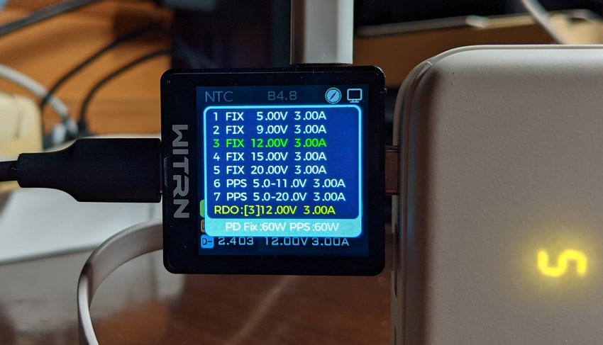 PB521 充电时申请档位为 12V 3A,实际最高功率 30W 。