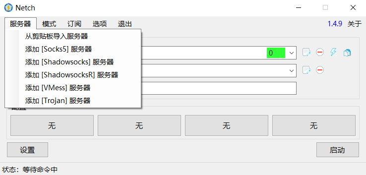 3.运行 Netch.exe ,点击主界面的“服务器 - 添加 Socks5 服务器”。