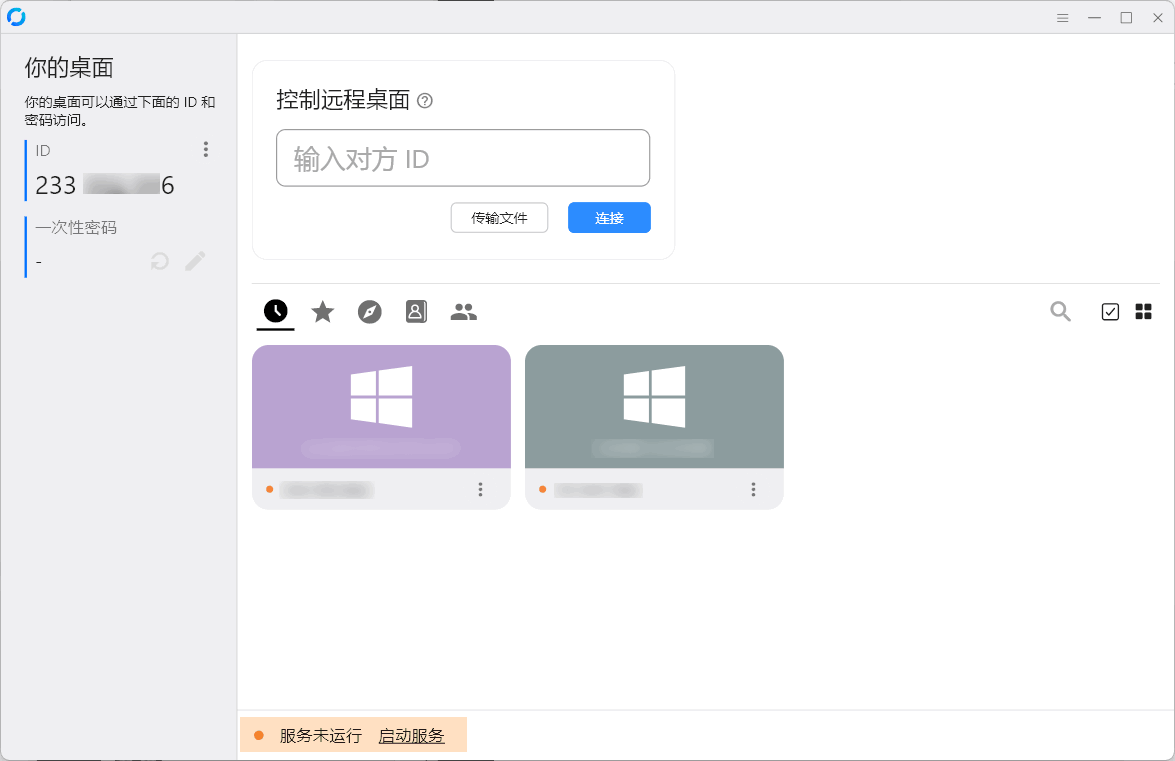 将 ID 和一次性密码复制发给技术人员,开始远程控制。