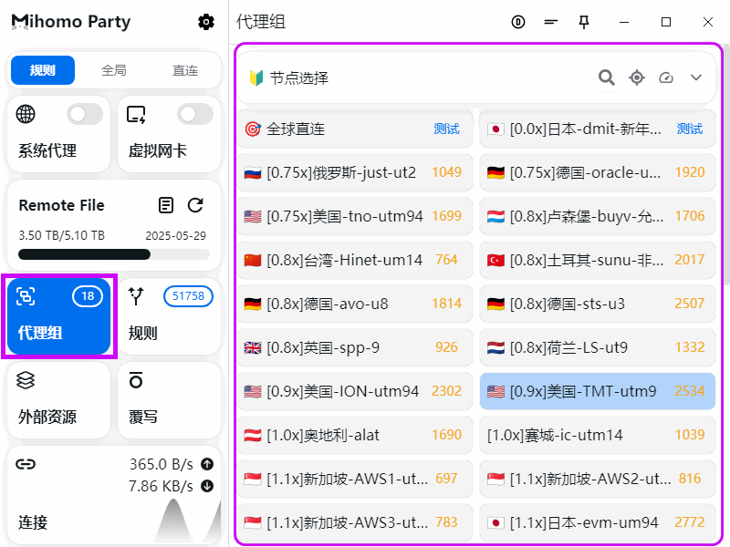 此时 mihomo-party 应该会自动弹出,在几秒钟后页面左侧应该会出现一条 Remote File 项目。